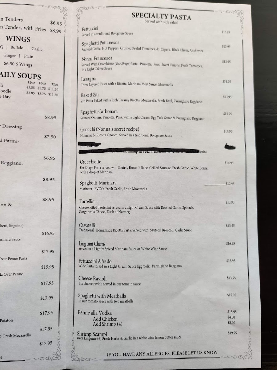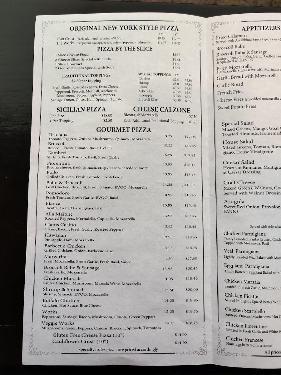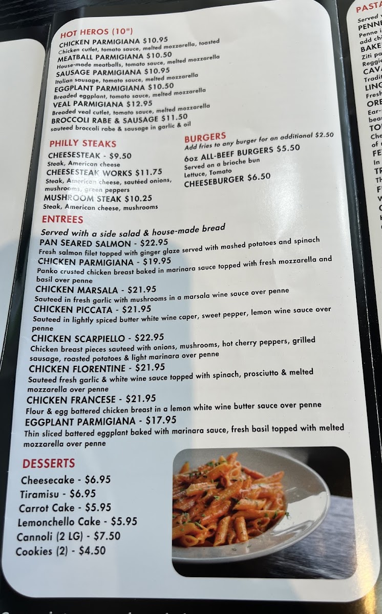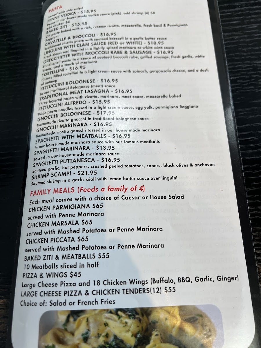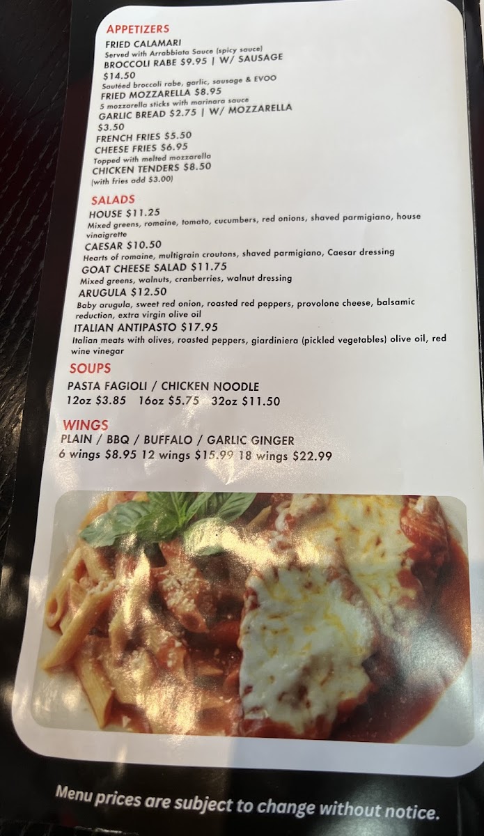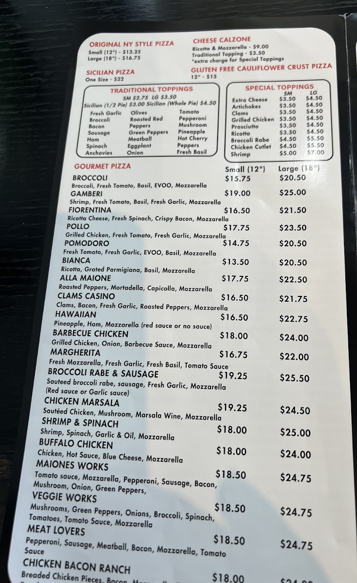 Maione's Pizza Kitchen offers a diverse menu, with a range of mouthwatering dishes to satisfy all tastes. From classic pizzas like the Sm Bianca and Sm Chkn-Bacon-Ranch to hearty pastas such as Gnocchi Marinara and Fettuccini Alfredo, there's something for everyone. For those craving something lighter, the Caesar Salad and House Salad make excellent choices, while appetizers like Broccoli Rabe & Sausage and Fried Mozzarella are perfect for sharing. If you're in the mood for a sandwich, their Chicken Caesar Wrap and Chicken Parm Grinder are highly recommended. Don't forget the Wings, available in sizes from 6 PC to 18 PC, and the indulgent desserts like Biscotti with Almonds and Chocolate Chips or the rich Nutella Tiramisu. For gluten-free options, they offer varieties like the Buffalo Chicken pizza and Gluten Free BYO. The drink selection includes refreshing choices like Dasani Water and Coca-Cola in both cans and 2-liter bottles, alongside healthy options like VitaminWater Tropical. Whether you’re enjoying a casual meal or gathering for a family feast with options like Chicken Parm FAM or Baked Ziti & Meatballs FAM, Maione’s promises a satisfying dining experience.